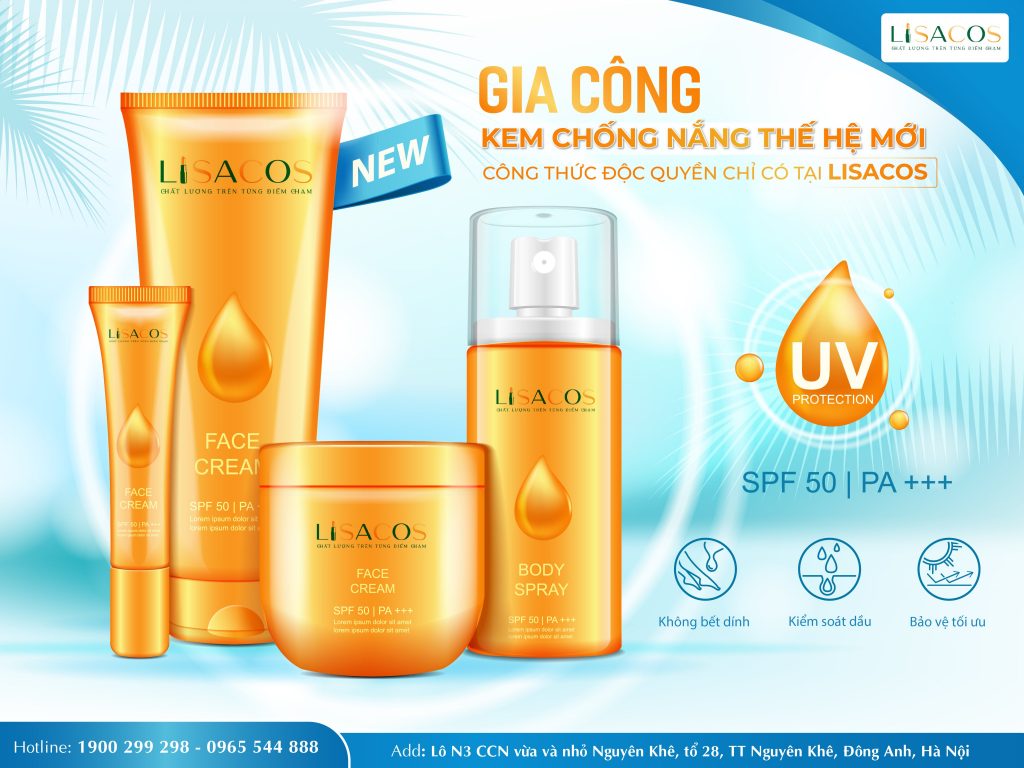 💦 LÀ MỘT SẢN PHẨM ĐA NĂNG : dùng được cho cả mặt và toàn thân bởi đặc tính dịu nhẹ của sản phẩm. Khi đặt gia công kem chống nắng tại Lisacos, bạn sẽ được hưởng nhiều ưu đãi hấp dẫn: – Giá thành tốt nhất thị trường – Hỗ trợ sản xuất với cỡ lô nhỏ chỉ từ 1000 sản phẩm tiết kiệm chi phí và an toàn khi kinh doanh